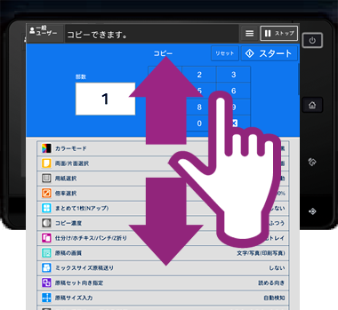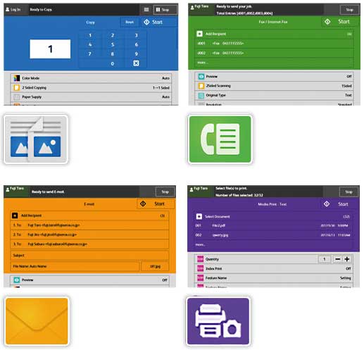 商务便携式UI可以将30组常用设置登记为偏好。只需轻触一下,即可重新调用这些设置。您还可以注册用于发送传真或保存扫描数据的目的地,从而进一步提高便利性。